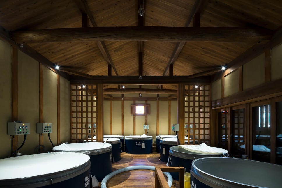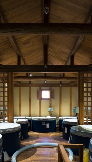 十五代蔵元・冨田泰伸専務の語る「七本鎗」のコンセプトは、「地元の酒米を使い、 米の品種のブレンドをせず、単一品種で造る事。そして極力濾過をせず、米の旨みがしっかりしていて、それをまとめる酸が骨格を作るような食中酒」。仕込み時期にあたる冬場に蔵の前を通れば、蒸したお米や新酒の香りに包まれる。街なかにあり土地も蔵も限られたスペースの中で、効率のよい作業風景が印象的である。2020年 3 月、旧蔵の老朽化と作業効率向上のために新しい醸造蔵が竣工した。 歴史と景観との調和から低層の木造を採用し、最新の酒造りのための空 間や設備配置を構成しており、県内同業者からの注目される新蔵であ る。雪深い木之本の冬、この蔵で醸され発売される新酒が楽しみでならない。